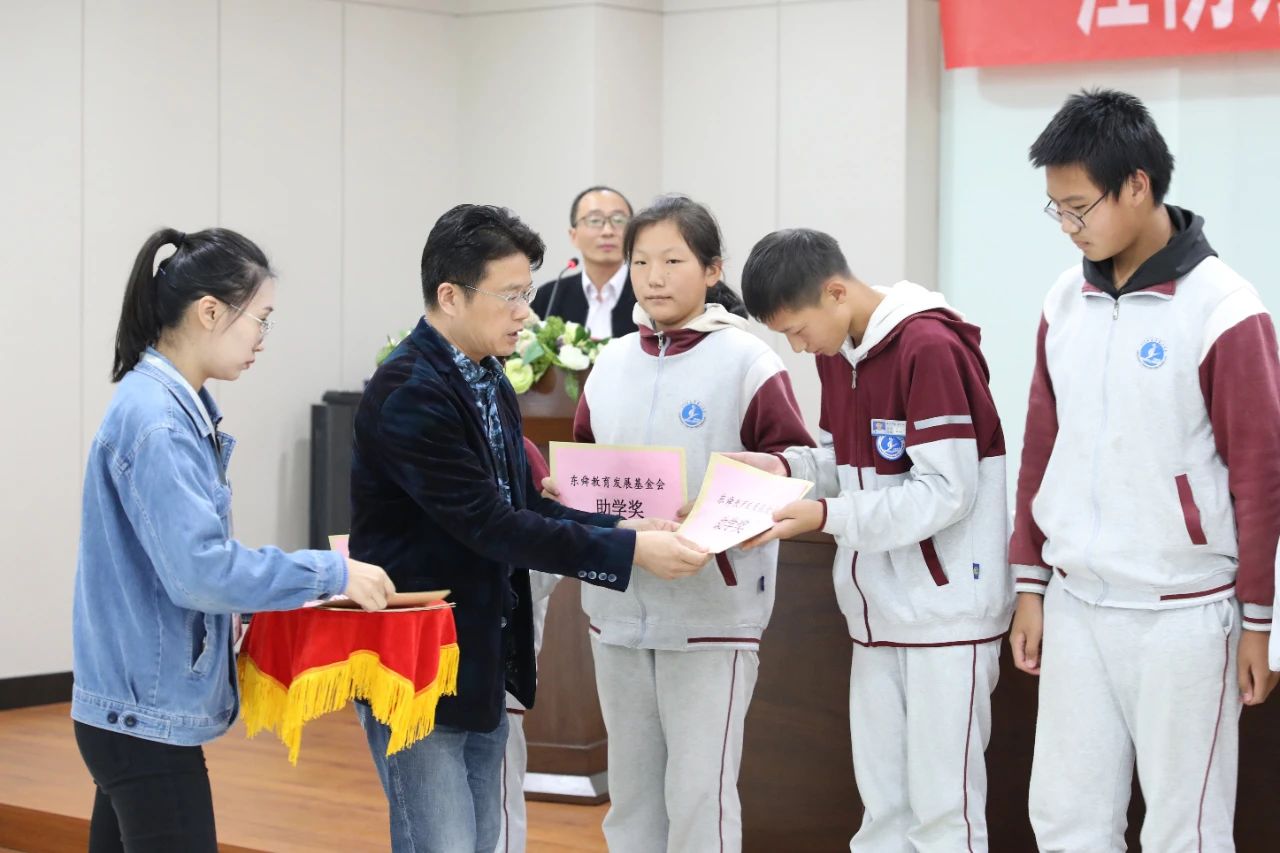 ▲東舜教育發(fā)展基金理事會名譽理事長周永南為優(yōu)秀教師頒獎