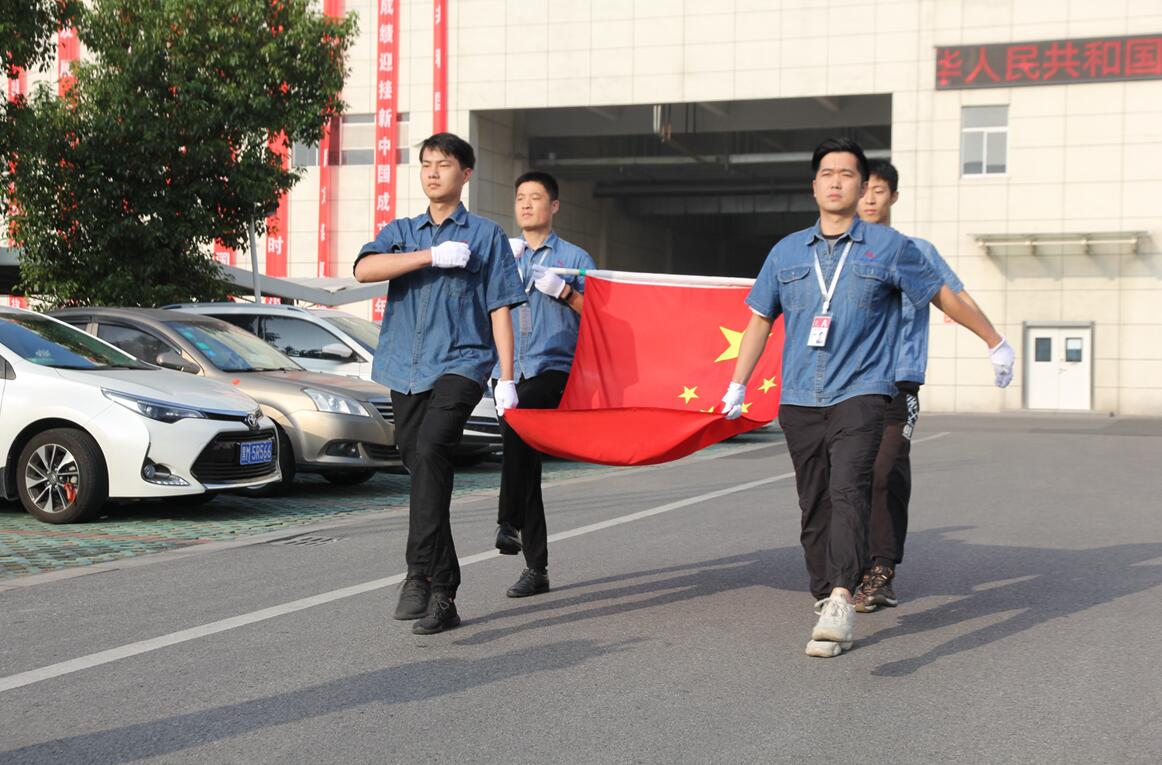 活動現(xiàn)場,彩旗飄飄,隨風舞動的條幅,書寫著對祖國最為誠摯的祝福,通利科技到處洋溢著喜慶的氛圍,公司300多名員工排列整齊,等待著莊嚴的升旗時刻。